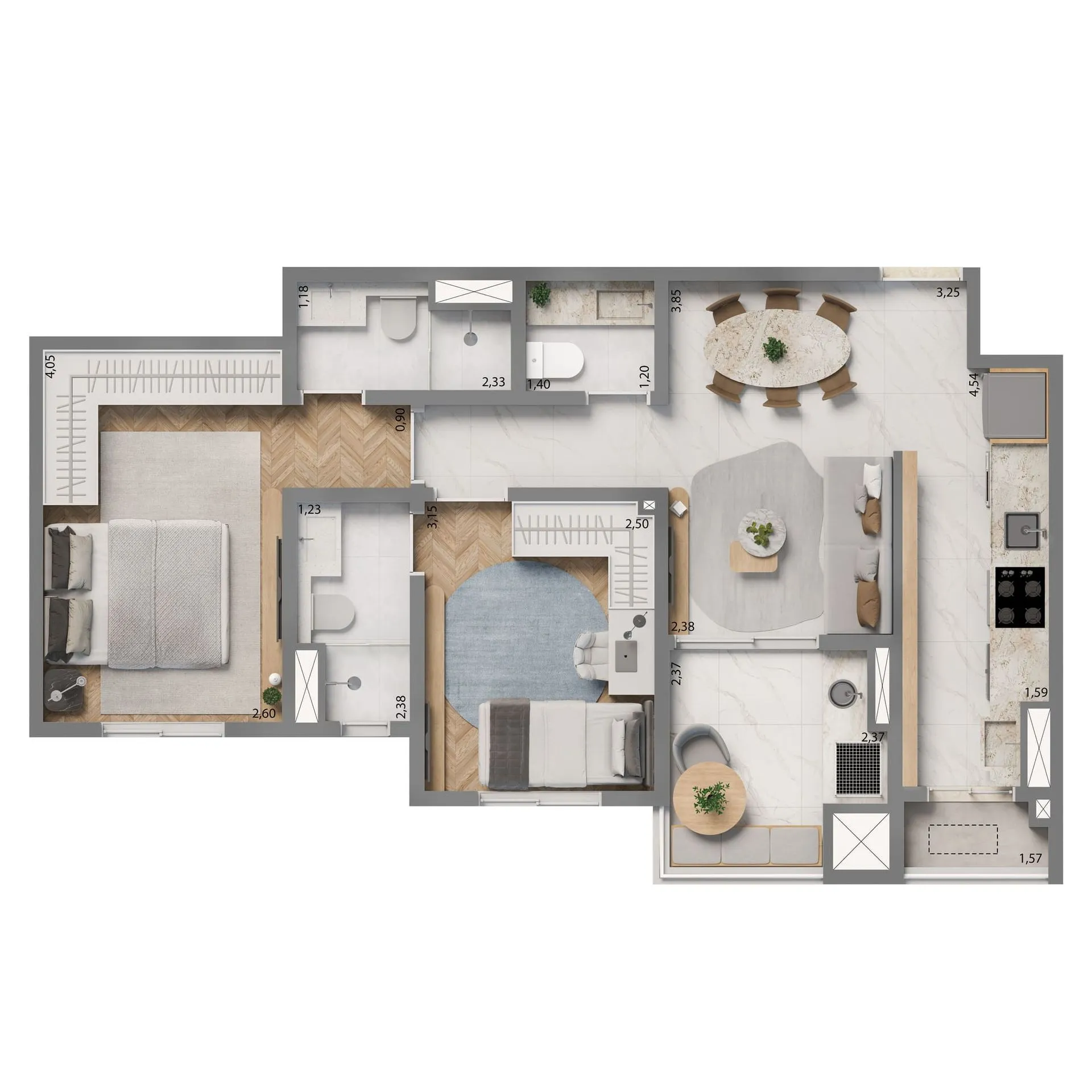 Cada espaço foi planejado para proporcionar bem-estar, equilíbrio e funcionalidade — da varanda ao clube privativo. Aqui, a casa não é apenas onde se mora, mas onde se vive plenamente, com conforto, segurança e praticidade.